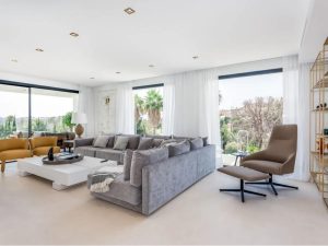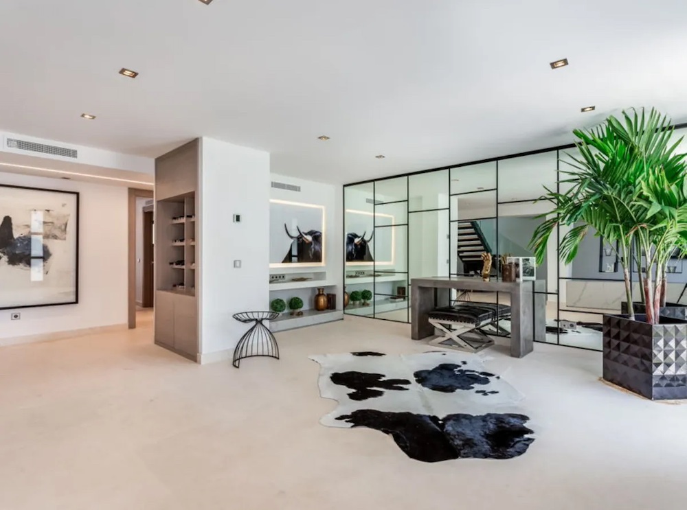 This luxurious villa, located in the prestigious area of Nueva Andalucia, Marbella, Malaga, epitomises sophistication and modern living. Boasting five spacious bedrooms and five bathrooms, including three en-suite, this property is designed to provide the utmost comfort and convenience. With a built area of 495m², complemented by a 149m² terrace and a generous 985.2m² plot, the villa offers ample space for both indoor and outdoor living, making it an ideal choice for families or those who love to entertain.
